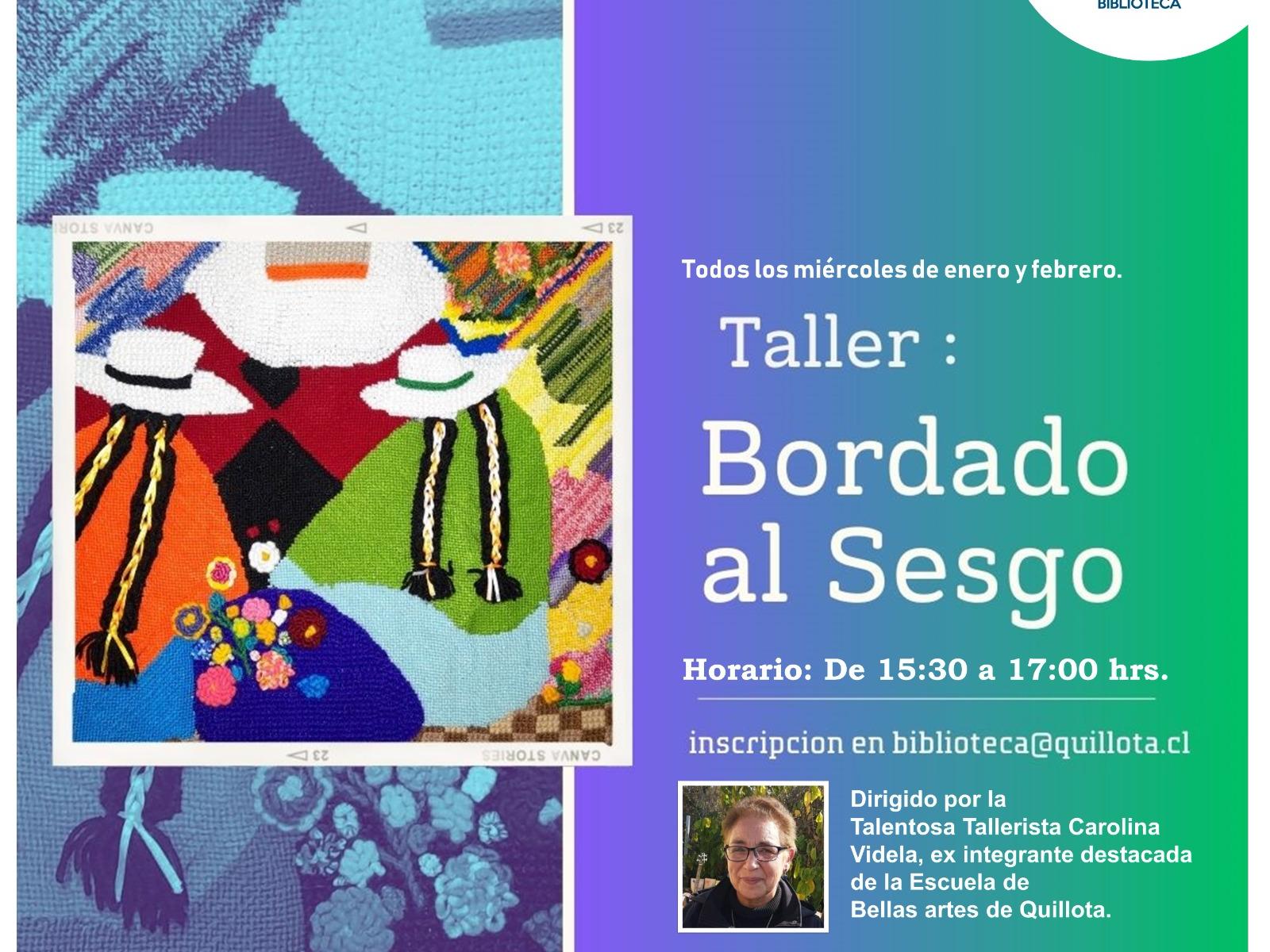 La Biblioteca Municipal se complace en invitar a la comunidad a participar en el intrigante "Taller de Lectura a través del Bordado al Sesgo", dirigido por la talentosa tallerista Carolina Videla, ex integrante destacada de la Escuela de Bellas Artes de Quillota.
