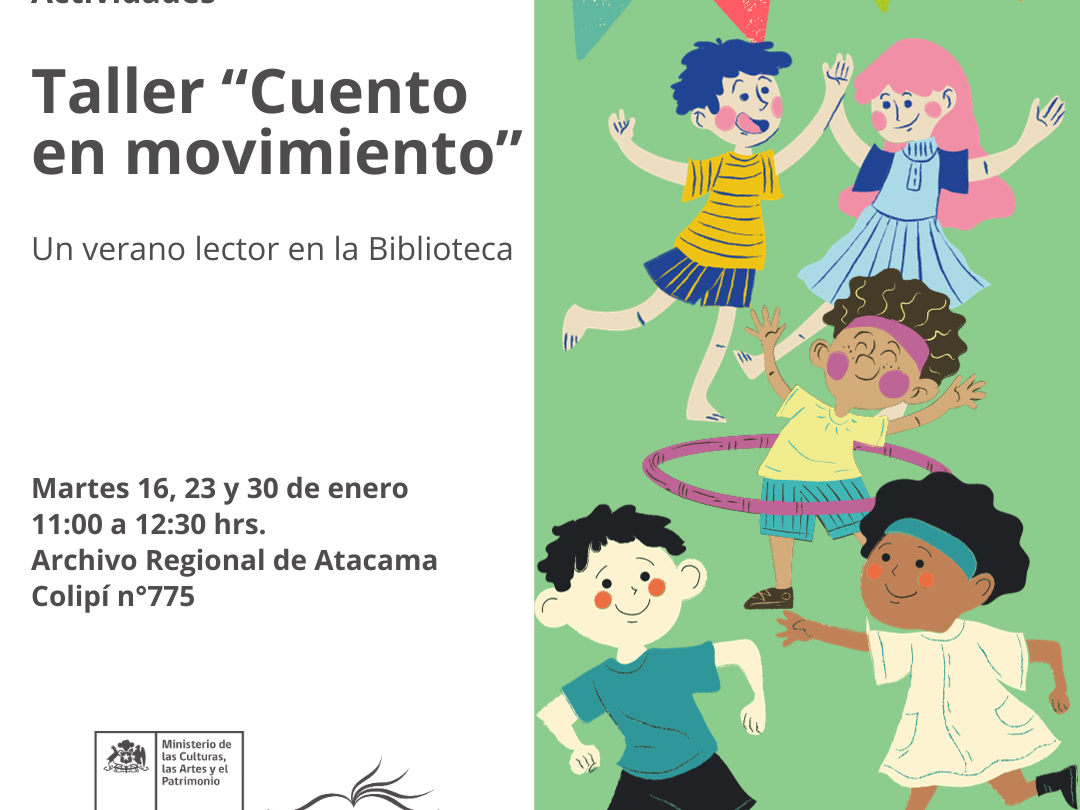 La Biblioteca Regional de Atacama invita a disfrutar este verano en familia en el taller «Cuento en movimiento» que une la lectura con la actividad física. Niñas y niños se pondrán en movimiento de forma divertida a través de juegos, cuenta cuentos y dinámicas que estimulen su creatividad.