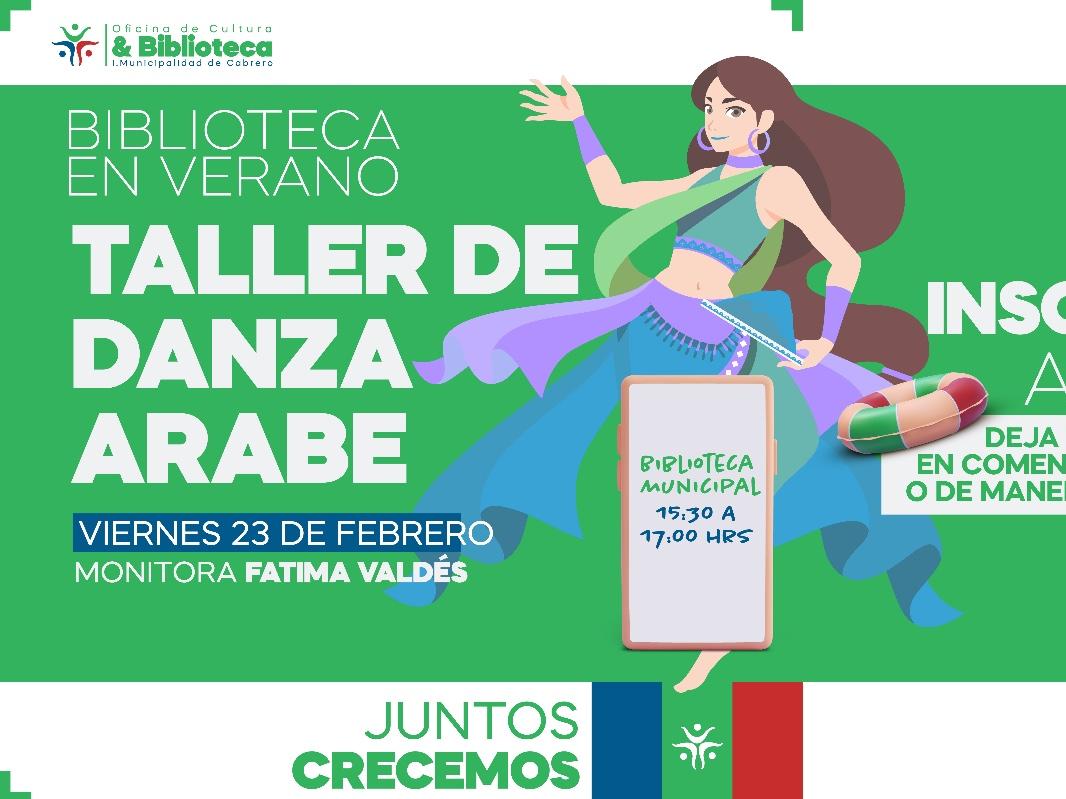 La Biblioteca Pública N°63 de Cabrero «Manuel Zañartu» invita a participar del taller de danza árabe.