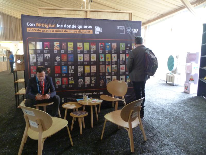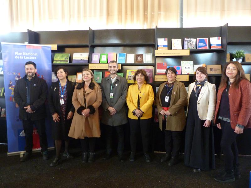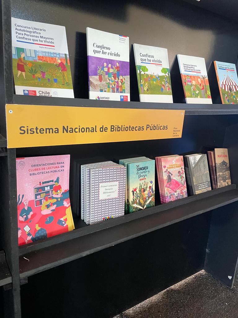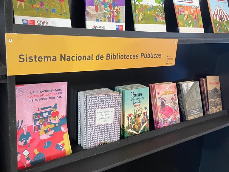 El espacio de lectura cuenta con una exhibición bibliográfica diversa, en donde los asistentes pueden acceder a colecciones y publicaciones de los diferentes programas de lectura de las instituciones que forman parte del Plan Nacional de la Lectura, entre ellas: publicaciones de la Biblioteca Nacional con obras de Vicente Huidobro, Alfonso Alcalde, Violeta Parra, Rosamel del Valle, Gabriela Mistral, Alberto Blest Gana, entre otras; mientras que por parte del Sistema Nacional de Bibliotecas Públicas (SNBP) se exhiben guías sobre clubes de lectura, libros de talleres de creación literaria y publicaciones que recopilan las obras ganadoras de distintas versiones del concurso de cuento y poesía de Bibliometro, y blocks para pintar y colorear bibliomóviles. También hay muestras de las obras ganadoras de Premios Literarios, catálogos de libros ganadores del programa de Adquisición de Libros Chilenos, Antologías ciudadanas, entre otras publicaciones de la Secretaría del Libro y la Lectura del Ministerio de las Culturas. En el mismo espacio, se instaló una gigantografía de la Biblioteca Pública Digital (BPDigital) que incluye las portadas de 60 libros de autoras y autores nacionales, que se pueden descargar directamente a dispositivos móviles y tabletas mediante el escaneo de un código QR impreso en la gráfica.