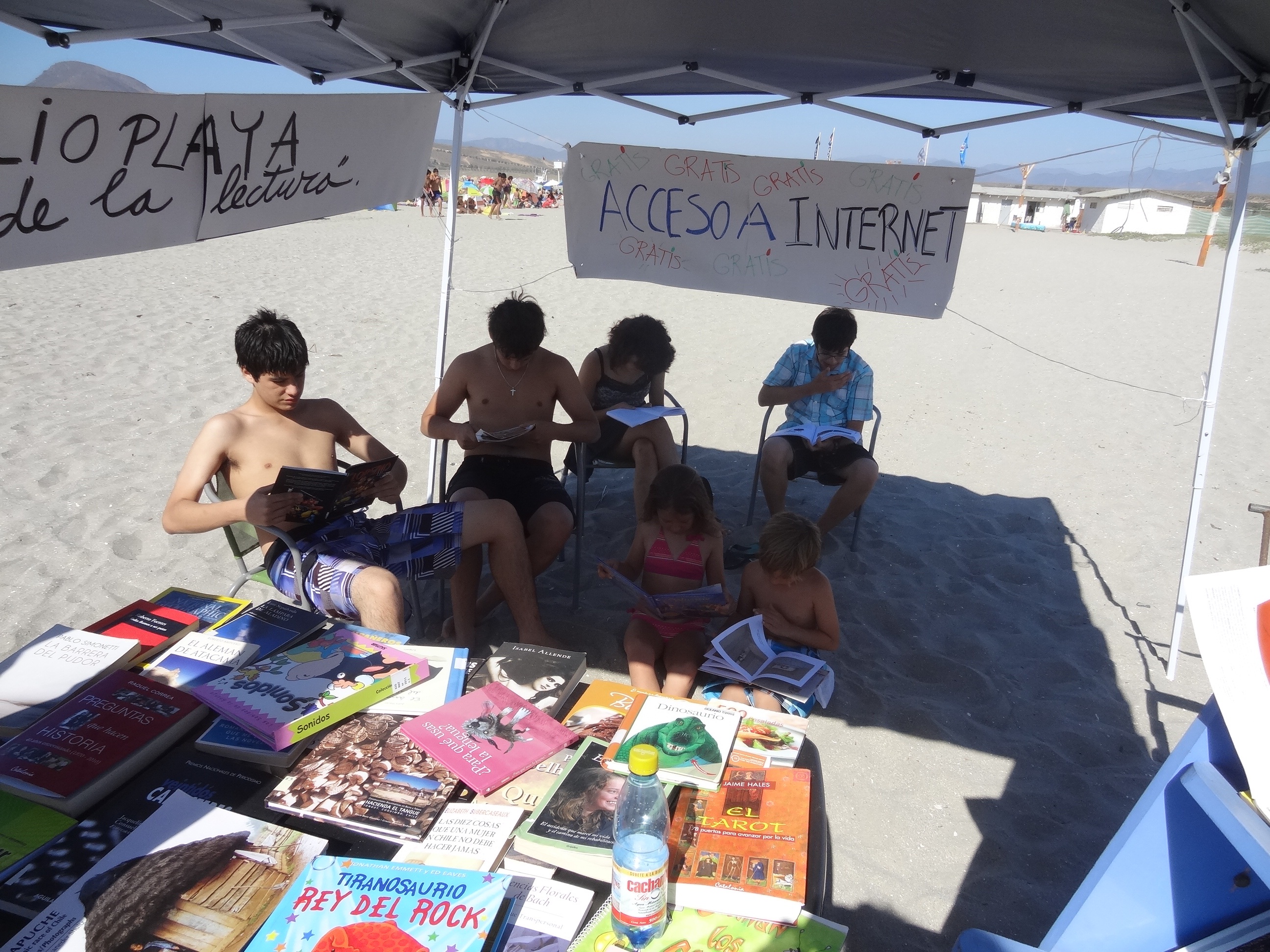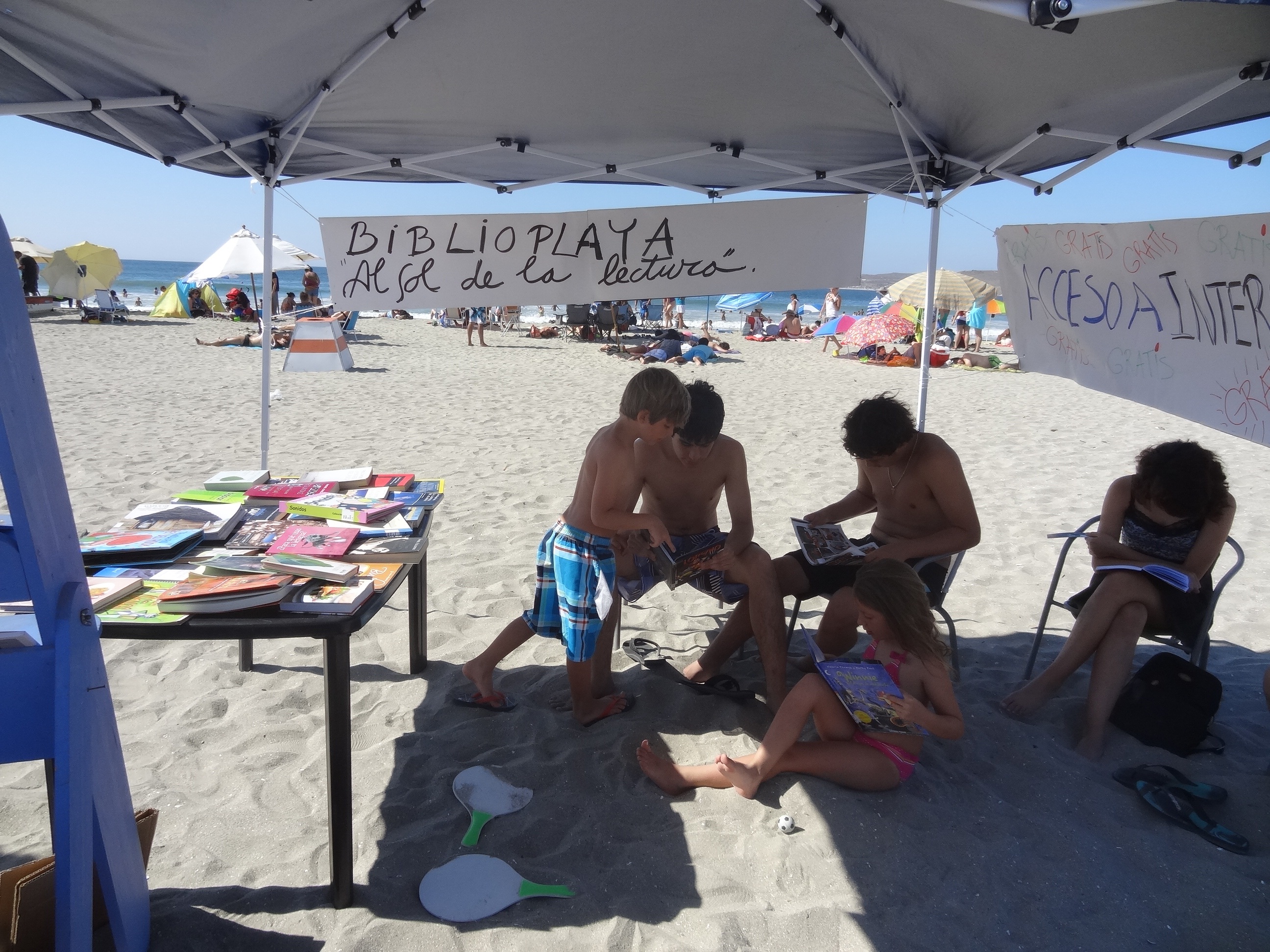 Bajo el toldo que instaló la biblioteca en la playa no sólo es posible encontrarse con una estantería llena de títulos diversos y pensados para todo tipo de público; también se puede acceder gratuitamente a Internet, ya sea utilizando los notebooks dispuestos por la biblioteca para estos fines, o bien, conectándose con un computador o un teléfono móvil personal a la señal wifi emitida por un router inalámbrico.