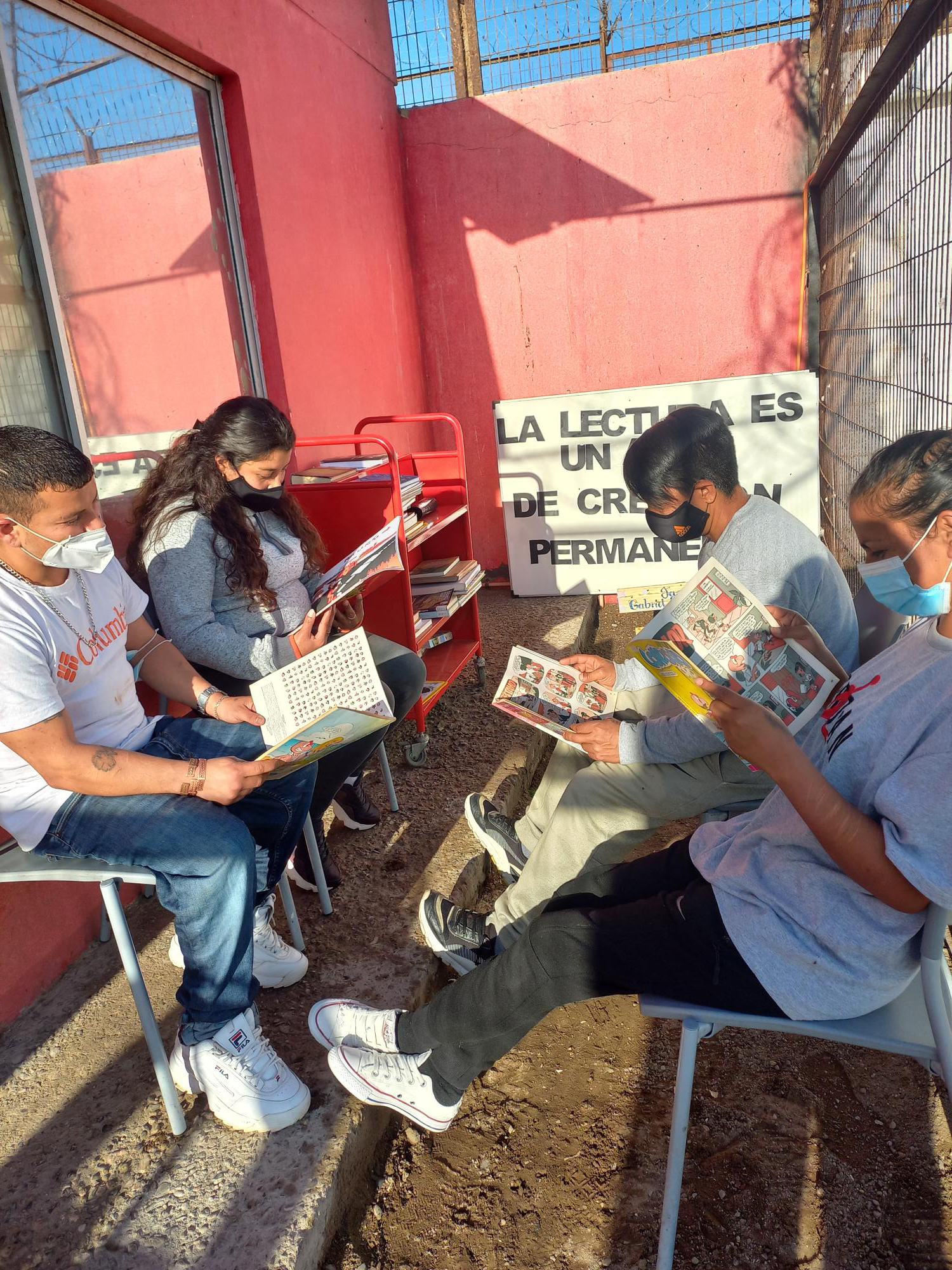 En el Centro de Cumplimiento Penitenciario (CCP) de Chañaral, este trabajo de gestión ha sido especialmente sobresaliente. Han mantenido un alto índice de préstamo de libros y de incorporación de nuevos socios a la biblioteca. Y han ido mucho más allá de eso: crearon una serie de actividades para que la comunidad del recinto utilizara de forma intensiva el espacio de la biblioteca. Entre estas actividades destacan la realización de un taller de arte literario, la construcción de un “jardín literario” en el exterior de la biblioteca, la celebración del Día del Niño, la utilización de ludotecas para el desarrollo de habilidades sociales, el taller “Contando mi historia”, un taller de inglés y un ciclo de cine.