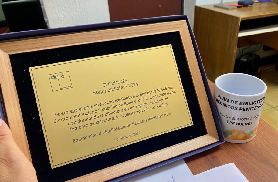 Por tercer año consecutivo, el Plan de Bibliotecas en Recintos Penitenciarios del Servicio Nacional de Patrimonio Cultural, implementado través del Sistema Nacional de Bibliotecas Públicas y BiblioRedes, premió a la mejor biblioteca del año, recayendo en 2024 el reconocimiento en el Centro Penitenciario Femenino (CPF) de Bulnes, región del Ñuble, valorando el desempeño global y la generación de actividades propias que permitan mantener la biblioteca activa, además de la correcta ejecución de los talleres y el registro de préstamos y personas usuarias durante el año, indicador clave del impacto en su comunidad.