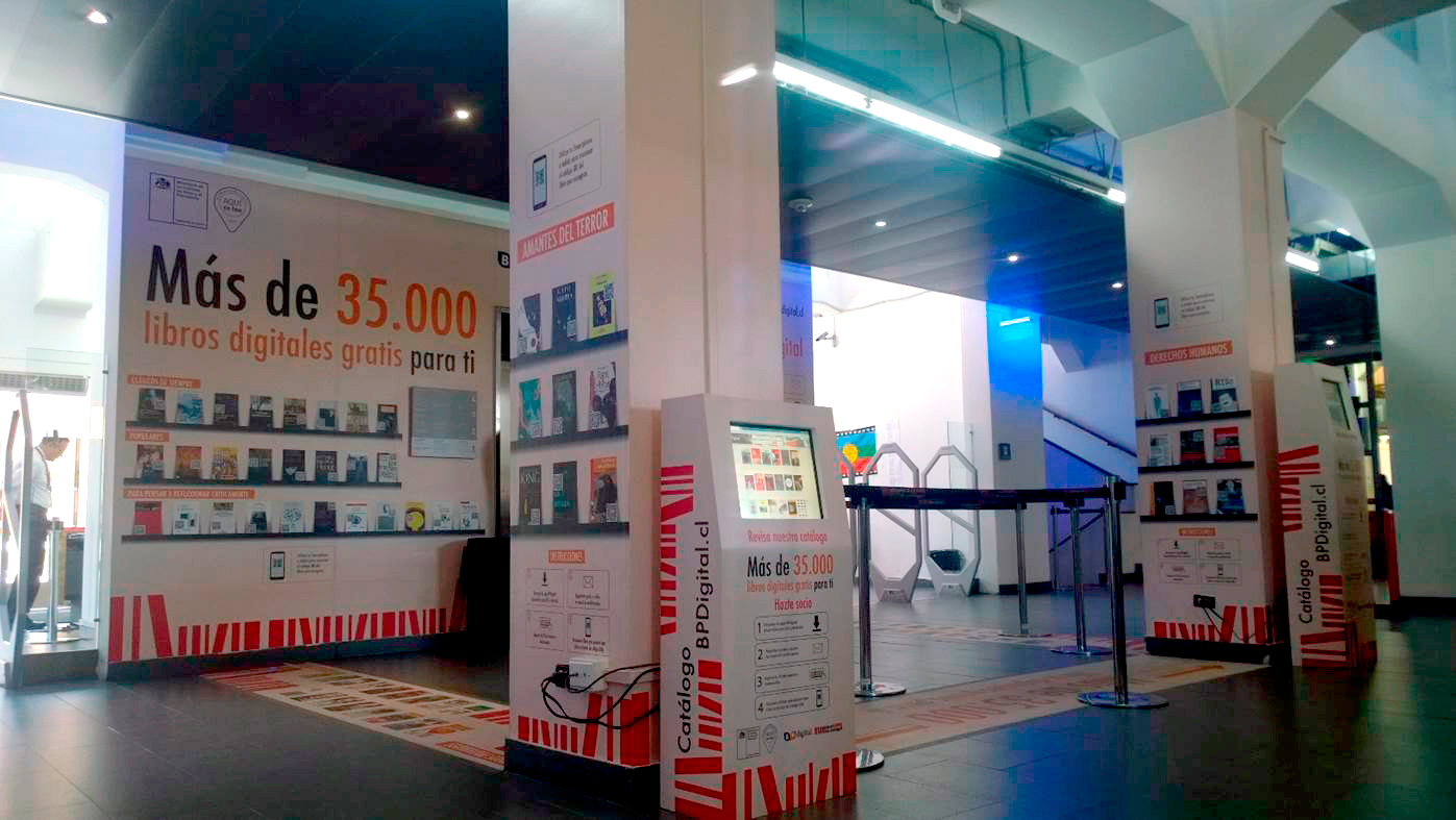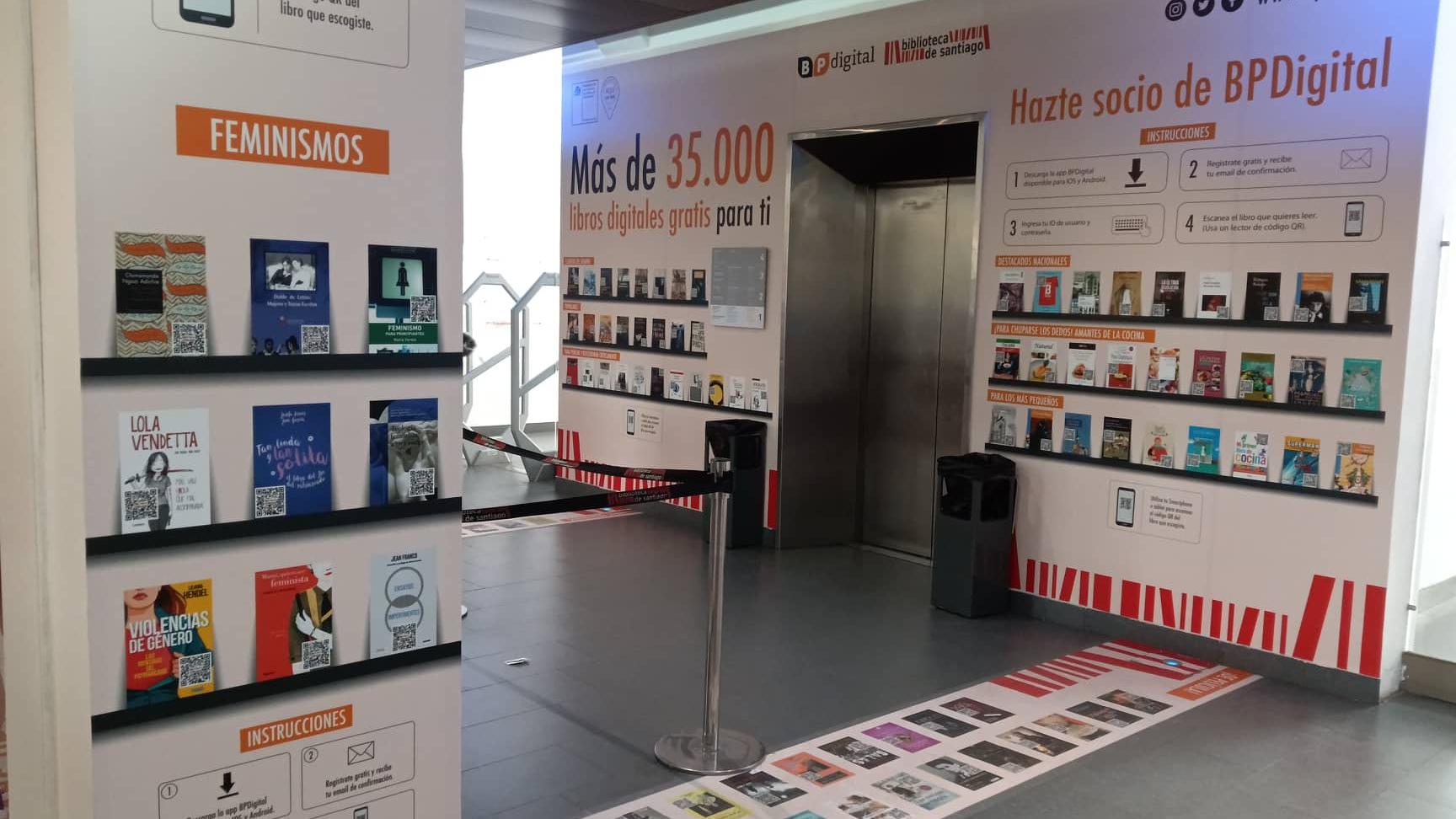 Una alianza de colaboración entre Biblioteca Pública Digital (BPDigital) y Biblioteca de Santiago (BDS) permitirá que las/os usuarias usuarios de la Biblioteca descarguen libros digitales en sus celulares o tablets. Emulando estanterías de libros reales, se han dispuesto más de 100 portadas de e-books en la entrada principal de la Biblioteca de Santiago, para que les visitantes de la biblioteca escaneen sus códigos QR y accedan a una variada colección de temáticas tanto para niñas y niños como para adultas/os.