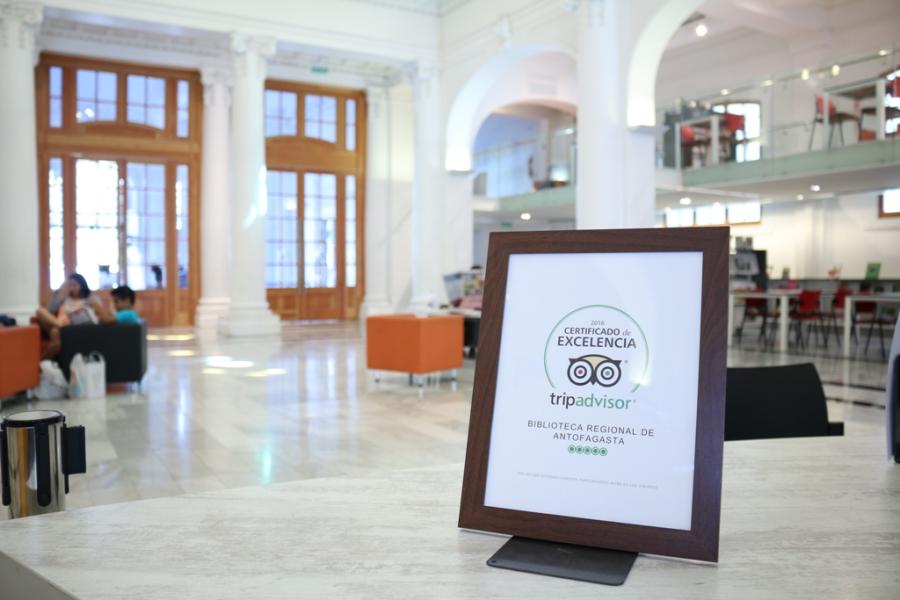 La biblioteca antofagastina es la primera institución pública en la región en recibir durante el 2016 el reconocimiento de excelencia TripAdvisor, un enorme premio al servicio que presta a su comunidad.