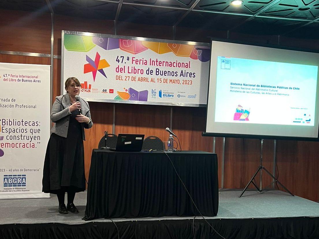 La visita comenzó con la presentación de la subdirectora del SNBP, Paula Larraín, en la tercera Jornada de Actualización Profesional: Bibliotecas: espacios que construyen democracia, organizada por la Asociación de Bibliotecarios Graduados de la República Argentina en la Biblioteca del Congreso de la Nación; en una mesa en el marco del seminario internacional Las bibliotecas y la transformación digital: entre la especialización y la vocación social; y en un panel en las Jornadas Nacionales de Bibliotecas Escolares y Unidades de Información Educativa.