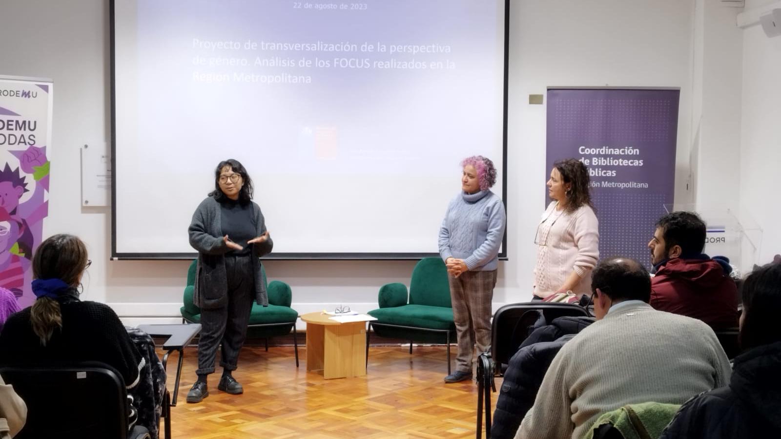 En dependencias de la Biblioteca de las Mujeres de Fundación Prodemu, las y los encargados de bibliotecas públicas de la región Metropolitana se dieron cita para conocer los principales resultados y hallazgos del Diagnóstico para el modelamiento de servicios bibliotecarios enfoque de género.