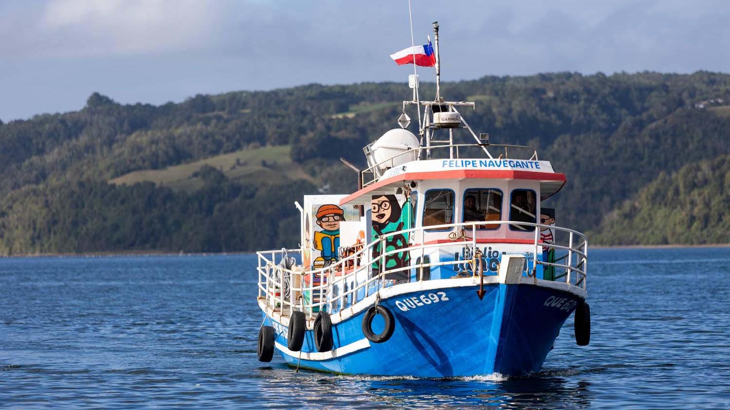 Desde el mar, a bordo de la bibliolancha de Quemchi, en Chiloé, la ministra de las Culturas, las Artes y el Patrimonio, Carolina Arredondo Marzán, dio esta mañana inicio a las celebraciones del Día Mundial del Libro y del Derecho de Autor. Tras la embarcación, otras dos barcazas le siguieron en caravana, en un recorrido que llevó lectura, teatro y música desde Quemchi hasta la isla Caucahué.