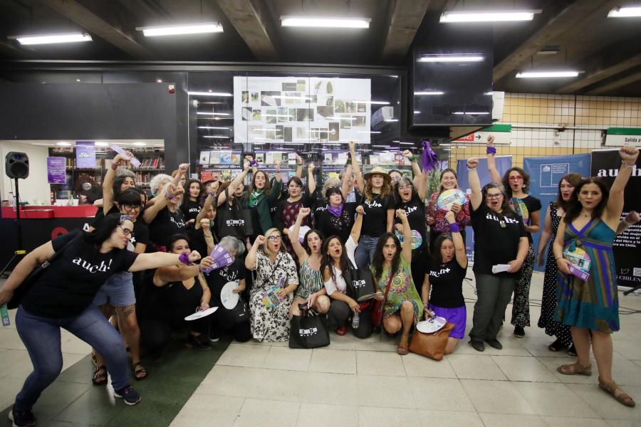 Como parte de las actividades del Día Internacional de la Mujer, este 8 de marzo, la ministra de las Culturas, Julieta Brodsky junto a las subsecretarias de las Culturas, Andrea Gutiérrez; y del Patrimonio Cultural, Carolina Pérez; la directora del Servicio Nacional del Patrimonio Cultural, Nélida Pozo; la subdirectora de Bibliotecas Públicas, Paula Larraín; y el presidente de Metro, Guillermo Muñoz, participaron en una intervención en Metro Baquedano donde el colectivo AUCH realizó lecturas de obras de escritoras nacionales con 25 creadoras de distintas generaciones y regiones del país.