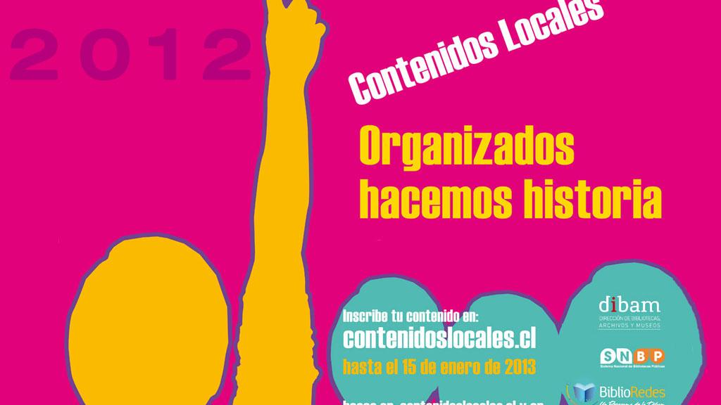 El Programa BiblioRedes del Sistema Nacional de Bibliotecas Públicas (SNBP) - DIBAM, a través de su Comunidad de Contenidos Locales, te invita a participar en el concurso "Organizados hacemos historia", que busca rescatar y reivindicar la labor de las organizaciones sociales en Chile.