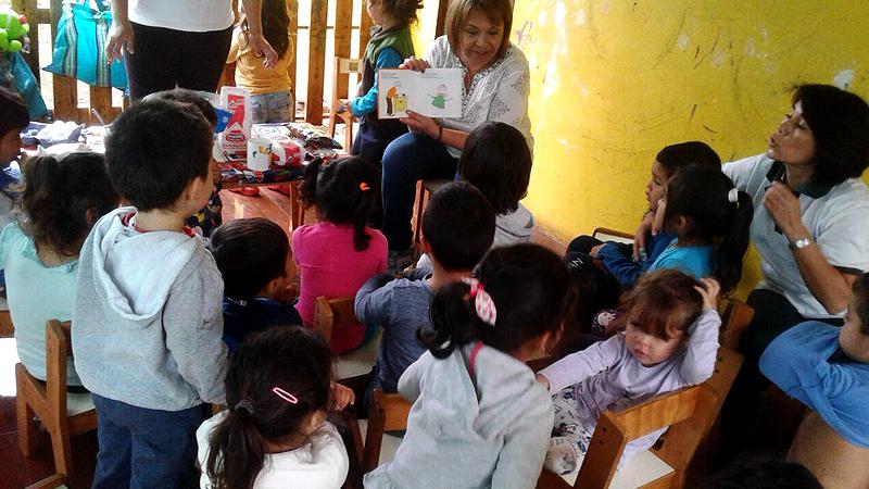 El recorrido lo realizó en compañía de Fátima Hotus, encargada de la Biblioteca Pública de Isla de Pascua, a lo que se sumó su visita a un jardín infantil donde compartió con los niños y niñas una entretenida actividad de fomento lector.