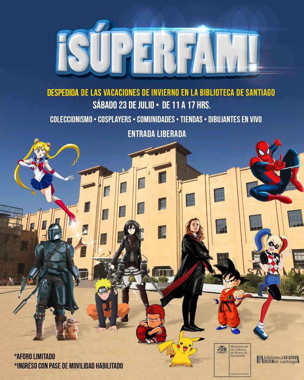 - Decirle adiós a las vacaciones con una sonrisa gracias a “Superfam: despidamos las vaciones”, evento de coleccionismo, ilustración y cosplayers que el sábado 23 de julio exhibirá con una feria y panoramas lo más cool de la cultura geek, otaku y ñoña.