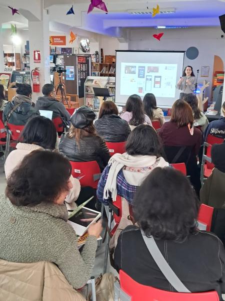 Durante la mañana, las expositoras Rocío Barros (Pehuén Editores) y Andrea Palet (editorial Laurel) abordaron temáticas de publicación de libros y métodos de indexación, compartiendo experiencias sobre edición infantil y juvenil, filosofía latinoamericana, fotografía para primera infancia y estándares de corrección y catalogación editorial.