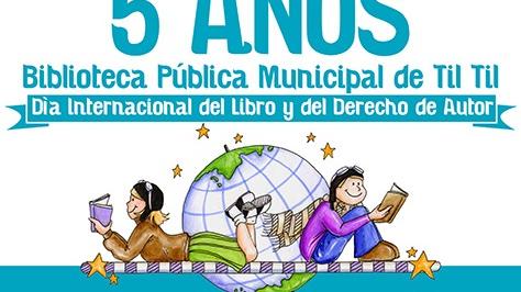 La biblioteca pública N°398 de Til Til cumple 5 años. Como buena festejada no sólo tendrá una ceremonia de aniversario el mismo día en que se celebrará el Día Internacional del Libro y el Derecho de autor; sino que además, tendrá muchas más actividades ligadas al quehacer literario.