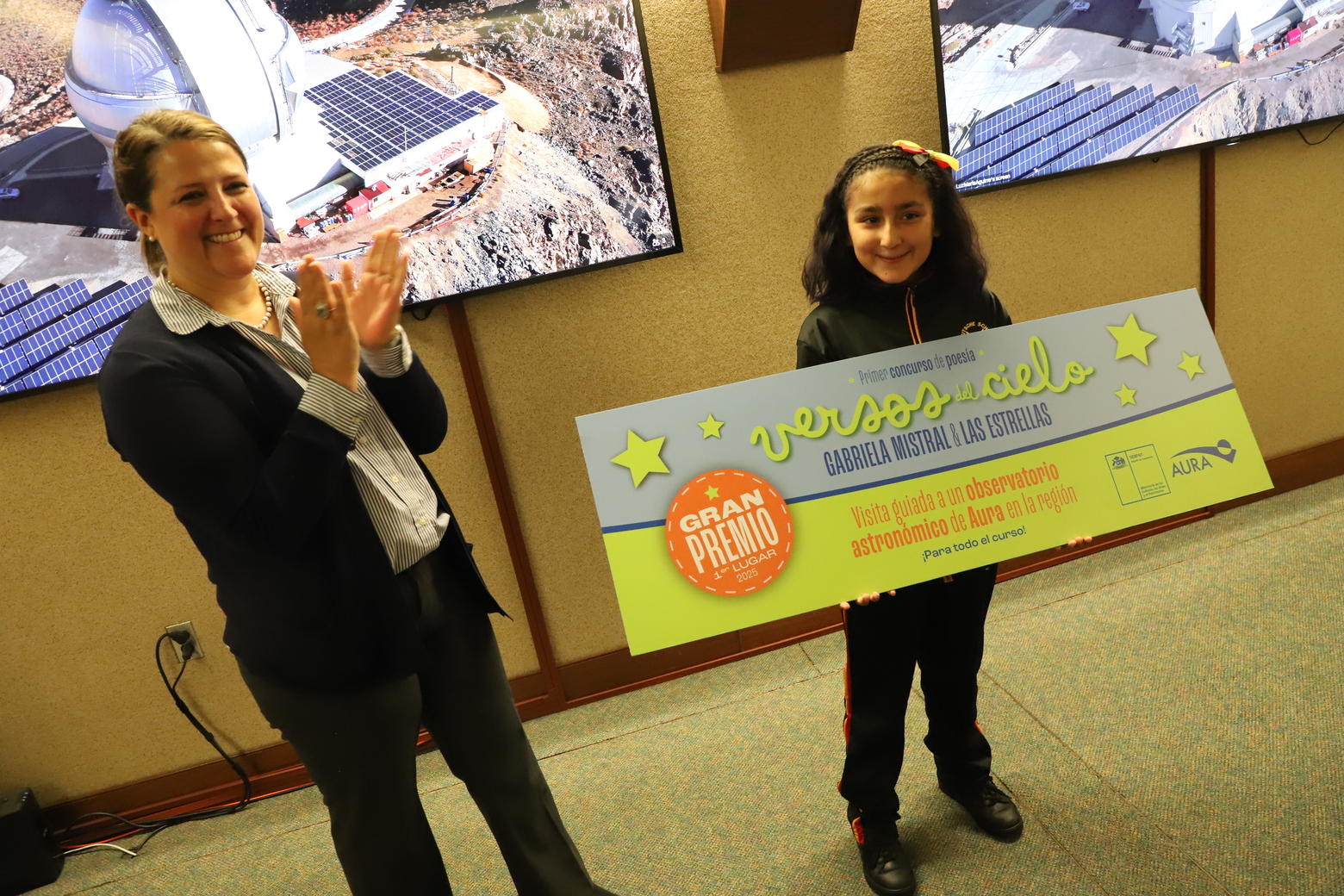 Por su parte la Vicepresidenta de AURA en Chile, Alejandra Voigt, destacó que “es emocionante ver a través de los poemas como los niños valoran el cielo de la región como un patrimonio natural. Es el mismo cielo que como observatorio nos atrajo a Chile para hacer investigación astronómica hace 60 años y que hace 15 años certificamos internacionalmente como santuario de los cielos oscuros y bautizamos como Gabriela Mistral”.