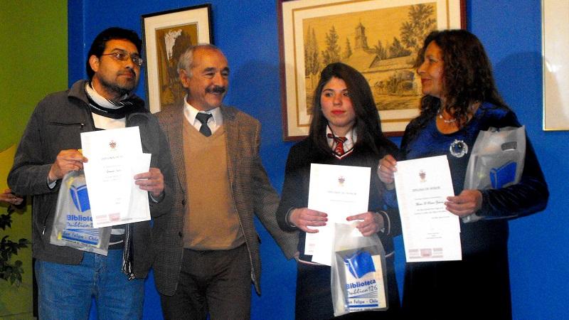 El premio Talento Infantil lo obtuvo Martín Manzano Zúñiga, alumno de 6° Básico del Liceo Mixto, con "Las estatuas de San Felipe"; y, en las categorías, Juvenil y Adulto, los premios fueron para "El líder del campanario" de Catalina Muñoz Miranda, alumna de 3° Medio del Instituto Abdón Cifuentes y "La verdadera libertad" de Elías Lobos Pérez; respectivamente.