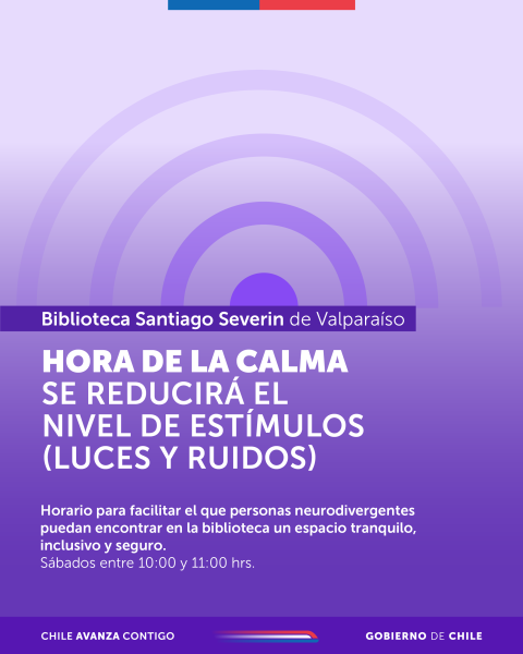 Junto con ello, se incorpora la Hora de la Calma, un espacio especialmente diseñado para favorecer una experiencia más tranquila e inclusiva. Durante este horario, se reducirá el nivel de estímulos sensoriales, como luces y ruidos, con el objetivo de que personas neurodivergentes puedan encontrar en la biblioteca un entorno seguro, respetuoso y acogedor. La Hora de la Calma se desarrollará los días sábado, entre 10:00 y 11:00 horas..
