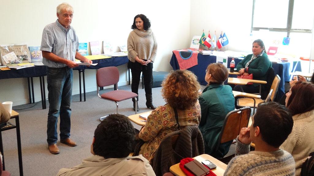 El protagonista de la cita fue el educador de niños con discapacidad visual francés Philippe Claudet, quien expuso acompañado de la Coordinadora de Fomento Lector y Escritor del SNBP, Florencia García, y la académica de la UTEM Pilar Correa.