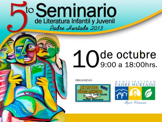 Biblioteca Pública de Padre Hurtado organiza "V Seminario de Literatura Infantil Juvenil 2013" Noticia Publicado el 03/10/2013 Ve más sobre Biblioteca Pública de Padre Hurtado organiza "V Seminario de Literatura Infantil Juvenil 2013"