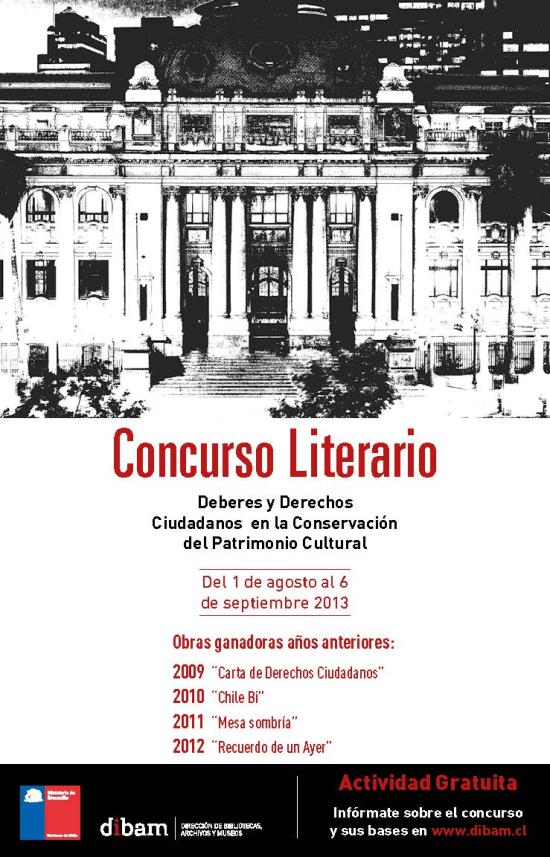 Se lanza concurso literario acerca de los deberes y derechos ciudadanos ante el patrimonio cultural Noticia Publicado el 05/08/2013 Ve más sobre Se lanza concurso literario acerca de los deberes y derechos ciudadanos ante el patrimonio cultural